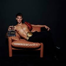 a man spray his self with parfume Cread Aventus black edition please make sure looks all like real in every detail.
